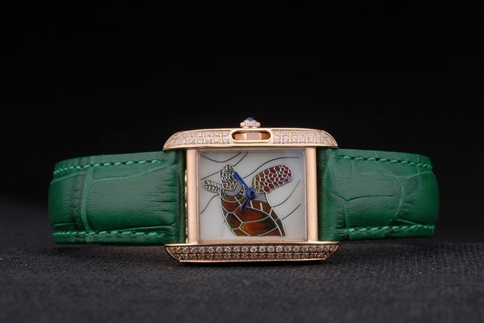 Bracelet de acero inoxidable: el calor correa de piel de cocodrilo verde en relieve Cartier rosa de 18 quilates chapado en oro plegable en cierre de hebilla