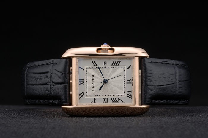 Este reloj Cartier es precioso y de gran calidad. La caja es de acero inoxidable cepillado y la correa es de piel de cocodrilo negra en relieve. El bisel es de oro rosa de 18 quilates chapado en oro y el cristal es de zafiro. El movimiento es de cuarzo (batería) y la calidad es Miyota japonesa. El reloj tiene un cierre desplegable de hebilla chapado en oro rosa de 18 quilates. Es resistente al agua hasta 30 metros.