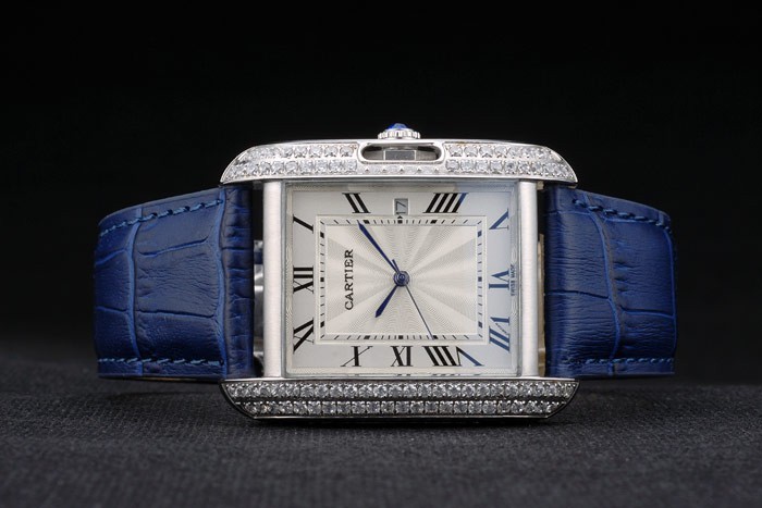 Bracelet de acero inoxidable: el calor Cartier en relieve correa de piel de cocodrilo azul con acero inoxidable pulido plegable en cierre de hebilla