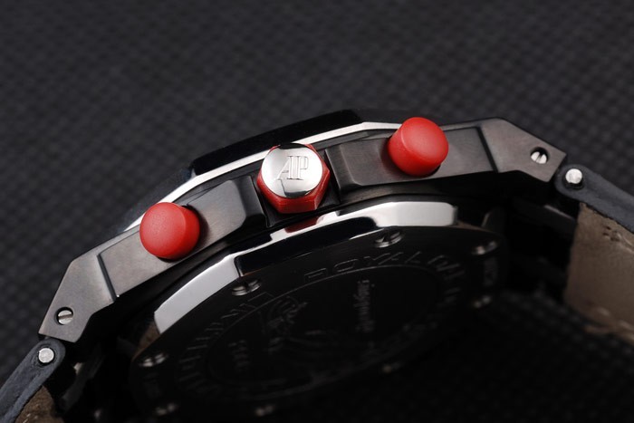 Bracelet de acero inoxidable: El calor en relieve correa de piel de cocodrilo negro Audemars Piguet con costuras de color rojo doble y Audemars Piguet grabado de iones de chapado plegable en clasp