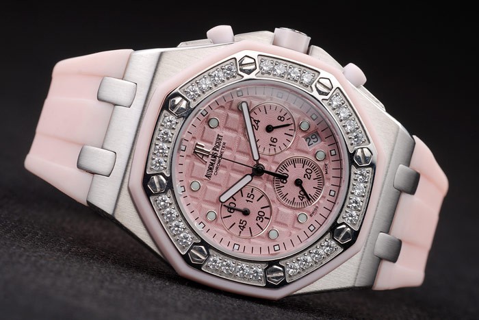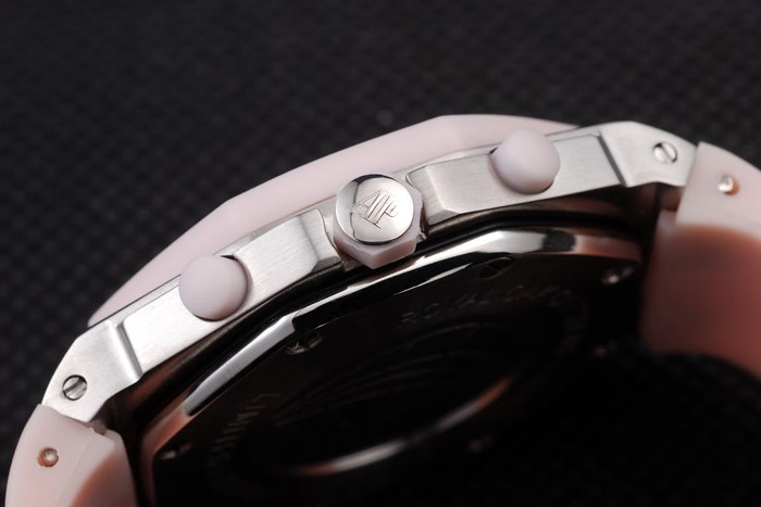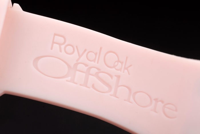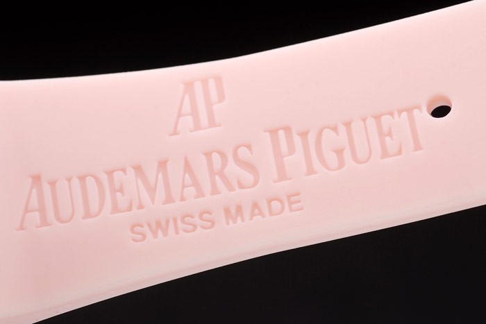 Bracelet de acero inoxidable: Audemars Piguet Royal Oak Offshore repujado correa de caucho rosa con Audemars Piguet grabado cepillado plegado de acero inoxidable -en Longitud clasp