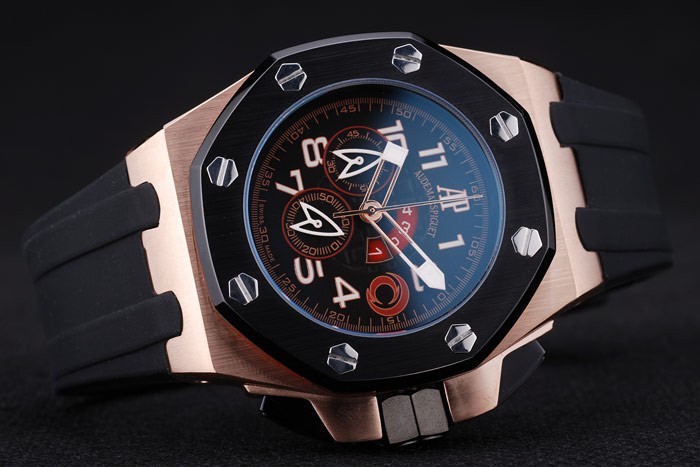 Bracelet: correa de caucho Negro con Audemars Piguet grabado de iones de chapado de gancho de la hebilla clasp