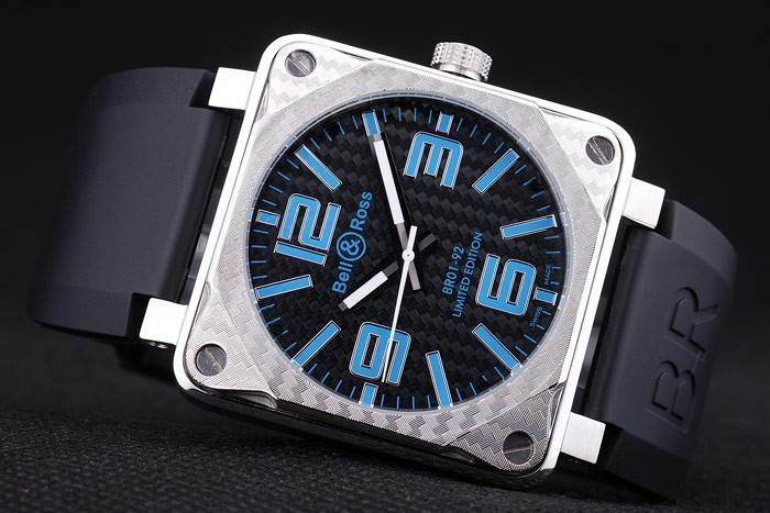 Bracelet: Bell&Ross logo y el producto de código en relieve correa de caucho negro con acero inoxidable gancho hebilla clasp