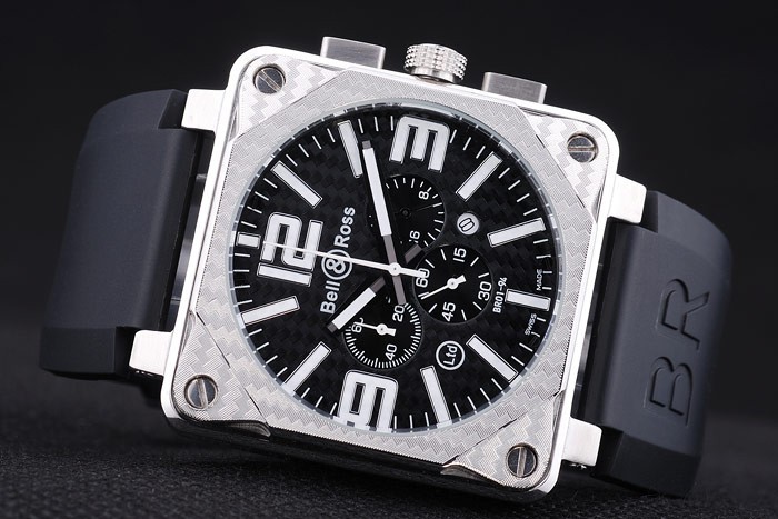 Bracelet de acero inoxidable: El calor en relieve Bell&Ross logotipo y correa de caucho negro código de producto con la BR inscribe acero inoxidable cepillado gancho de la hebilla clasp