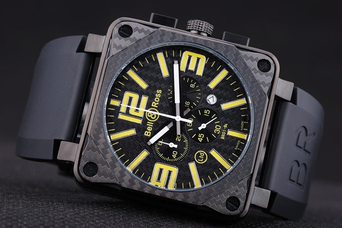 Bracelet de acero inoxidable: El calor en relieve logotipo y código de producto correa de caucho negro de Bell&Ross con el ion -plated gancho hebilla clasp