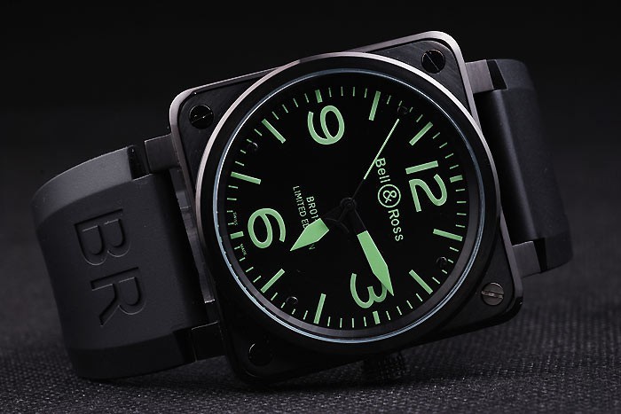 Bracelet de acero inoxidable: correa de caucho Negro con el logotipo en relieve de calor, el número de modelo y el producto código y BR grabado de iones de chapado de gancho hebilla de cierre de
