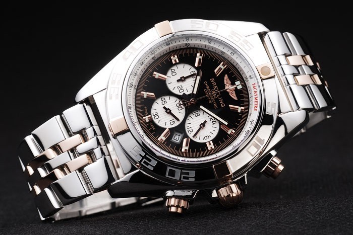 Bracelet de acero inoxidable: Acero inoxidable pulido y oro rosa acoplamiento de la pulsera con la fecha y Breitling grabado veces en clasp