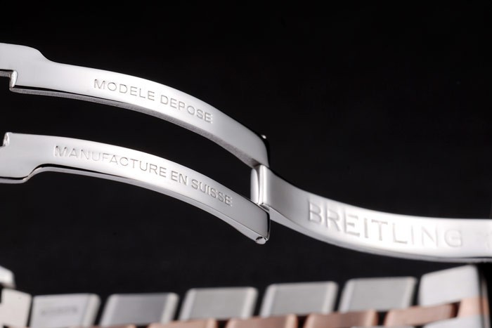 Bracelet de acero inoxidable: Acero inoxidable pulido y oro rosa acoplamiento de la pulsera con la fecha y Breitling grabado veces en clasp