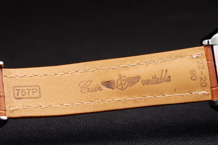 Bracelet de acero inoxidable: correa de piel de cocodrilo de Brown con la patente costuras de color blanco y el calor en relieve grabados Breitling y acero inoxidable grabado pliegan broche con el logotipo de Breitling en top