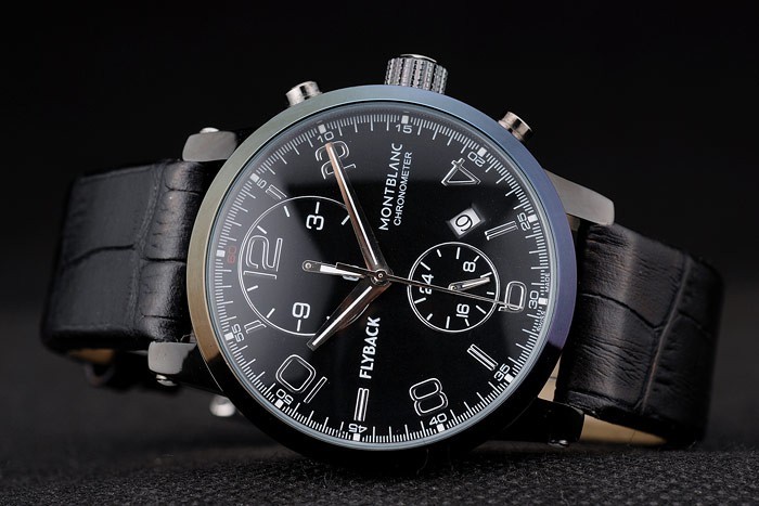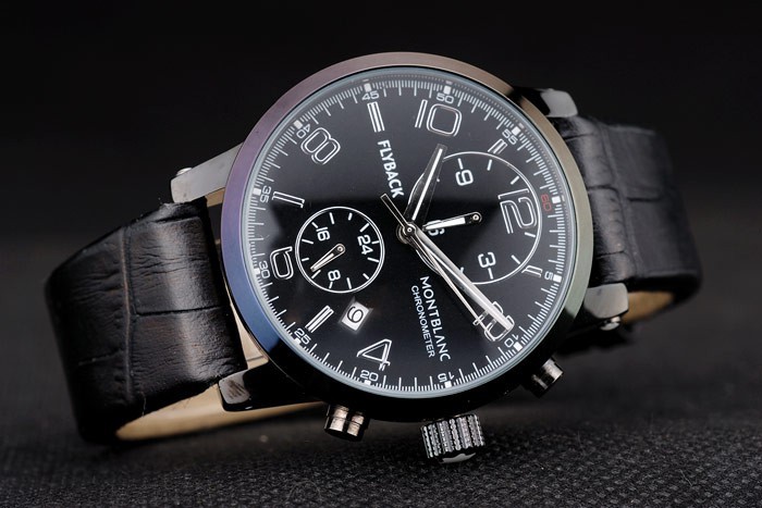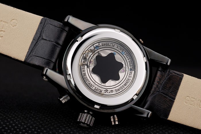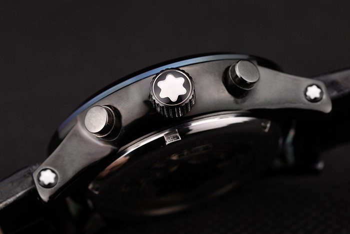 Crown: ión-corona chapada calado con el logotipo de Montblanc y dos coronas de pulsador ion-plateado a cada lado de it
