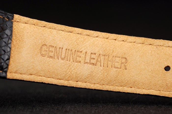 Bracelet de acero inoxidable: correa de cuero MontBlanc calor en relieve de piel de serpiente negro con costuras de hilo blanco y acero inoxidable pulido oculta clasp