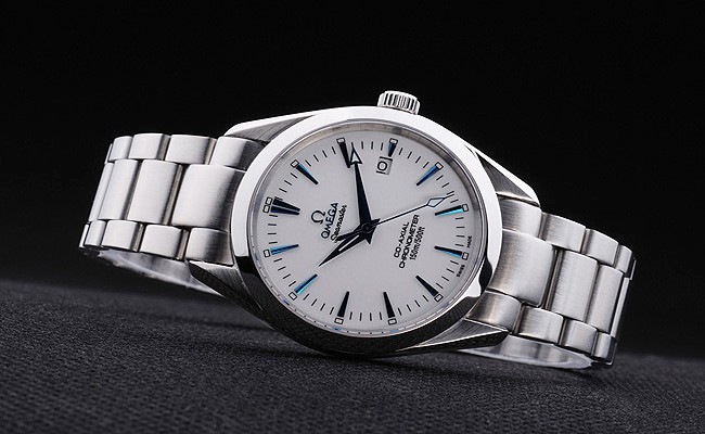 Bracelet acero inoxidable cepillado de acero inoxidable pulsera de enlace con el nombre de Omega y el logotipo de empuje inscrito liberación botón de despliegue clasp