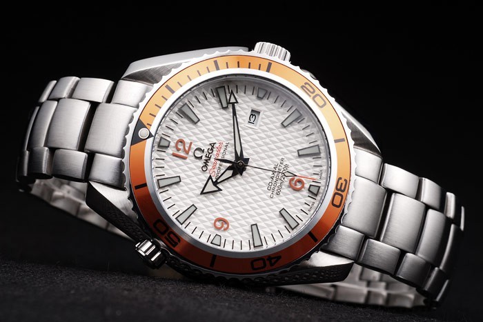 Crown: acero inoxidable cepillado cutwork corona con logo Omega además de una corona adicional en el frente superior corner
