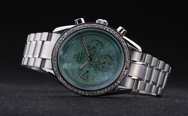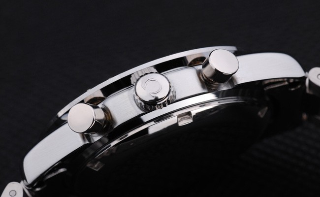 Crown: pulido corona calado de acero inoxidable con el logotipo de Omega más dos coronas adicionales, uno a cada lado de it