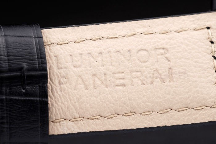Bracelet: correa de cuero Negro cocodrilo con calor en relieve sello Luminor Panerai y acero inoxidable gancho hebilla de cierre de ion-plateado con Panerai engraving