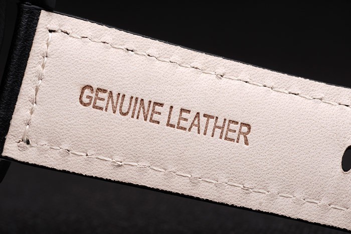Bracelet: correa de cuero Negro con el calor en relieve sello Luminor Panerai y acero inoxidable gancho hebilla de cierre de ion-plateado con Panerai engraving