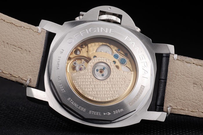 Este reloj tiene el vidrio AR. El color de la cara aparecerá diferentes colores dependiendo de cómo la luz cae sobre itBack: acero inoxidable cepillado complemento de vuelta con Officine Panerai engraving