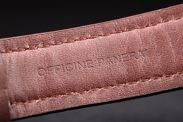 Bracelet de acero inoxidable: correa de cuero marrón oscuro con relieve de calor sello de Officine Panerai Italia y cepillado gancho de acero inoxidable corchete -buckle con Panerai engraving