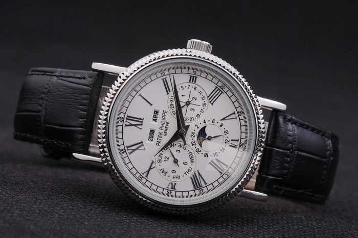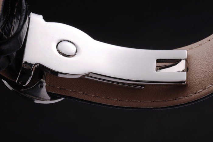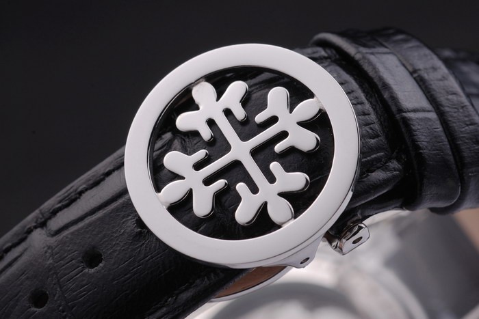 Bracelet de acero inoxidable: correa de cuero Negro con el sello de Patek Philippe y un pliegue de acero inoxidable en clasp