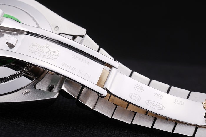 Bracelet acero inoxidable cepillado de acero inoxidable y oro amarillo acoplamiento de la pulsera con el logo de Rolex oculto Longitud clasp