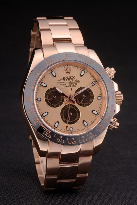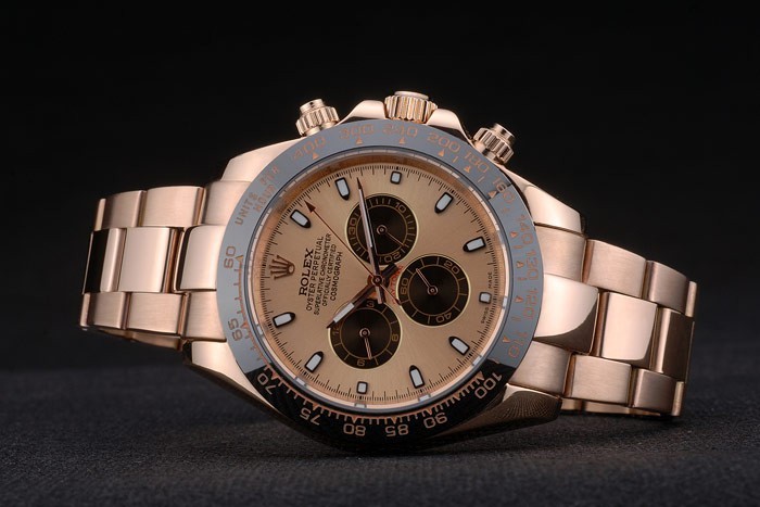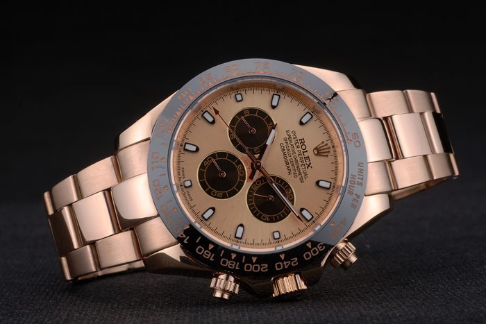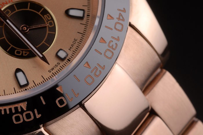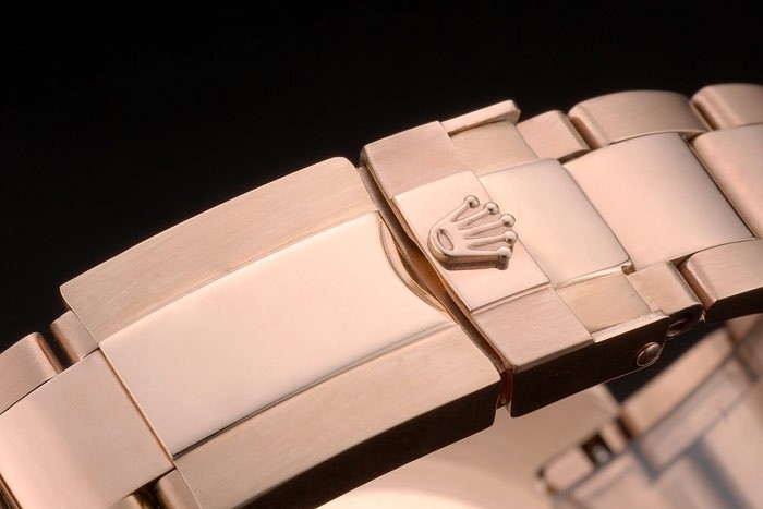 Crown: rosa de 18 quilates chapado en oro de la corona calado con el logotipo de Rolex y una corona pulsador a cada lado de it
