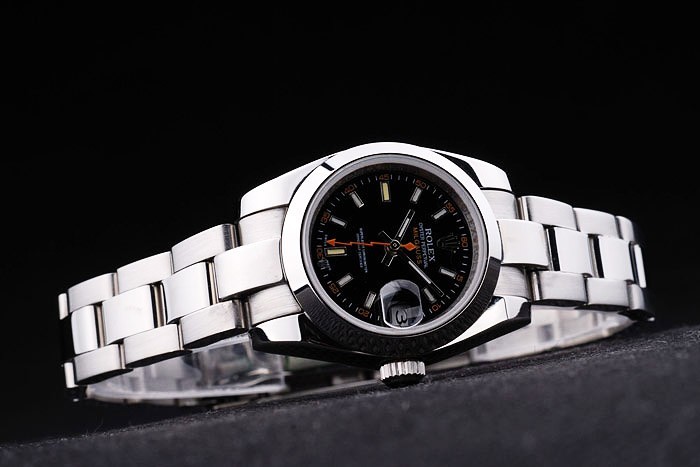 Bracelet acero inoxidable cepillado y pulido brazalete de eslabones de acero inoxidable con grabado Rolex doblar por la hebilla mostrando la longitud Rolex logo
