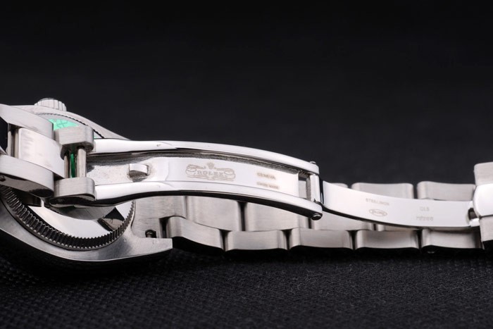 Volver: Acero inoxidable empuje en caso de vuelta con el verde de Rolex grabado stamp