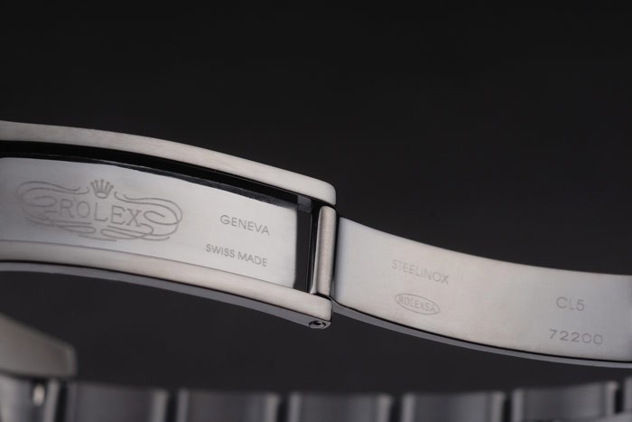 Bracelet de acero inoxidable: Ion-plateado brazalete de acero inoxidable de enlace con Rolex grabado plegable en cierre desplegable que muestra el Rolex logo