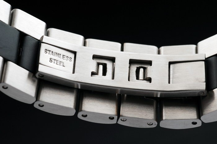 Bracelet: acero inoxidable cepillado y textura de iones plateado eslabón de brazalete con cierre oculto y ‘Zenith’ Longitud inscription